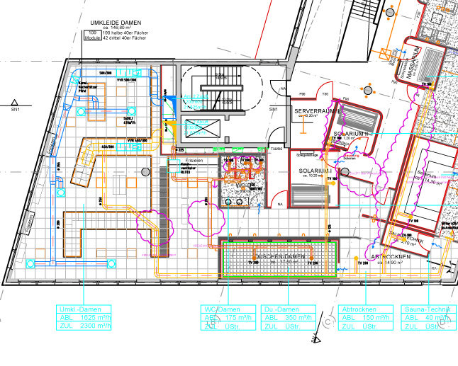 Für die technische Umsetzung einer Fitness- und Wellnessanlage ist sehr viel spezifisches Know-how in dem Bereich notwendig, weil die Anforderungen z.B. für Sanitärinstallationen und Raumlufttechnik ganz andere sind als für Verkaufsstätten oder im Wohnungsbau. Dieses fachspezifische Wissen haben wir und unsere Partner über viele Jahre aufgebaut, hiervon können Sie profitieren, wenn Sie uns auch für die TGA-Planung beauftragen.
