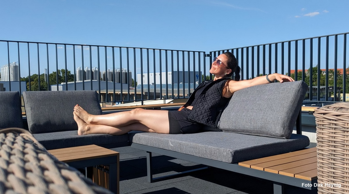 … das funktioniert auch auf der neuen Dachterrasse, wie die Bauherrin beweist. Ihr Kommentar: „Mir professionelle Hilfe bei KerShine zu holen war das Beste, was ich gemacht habe.“