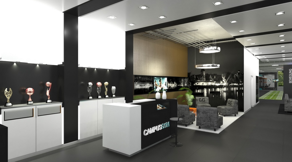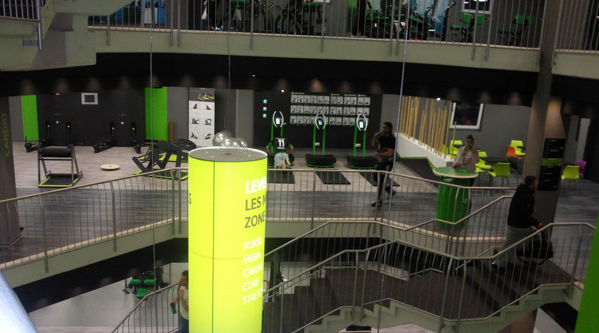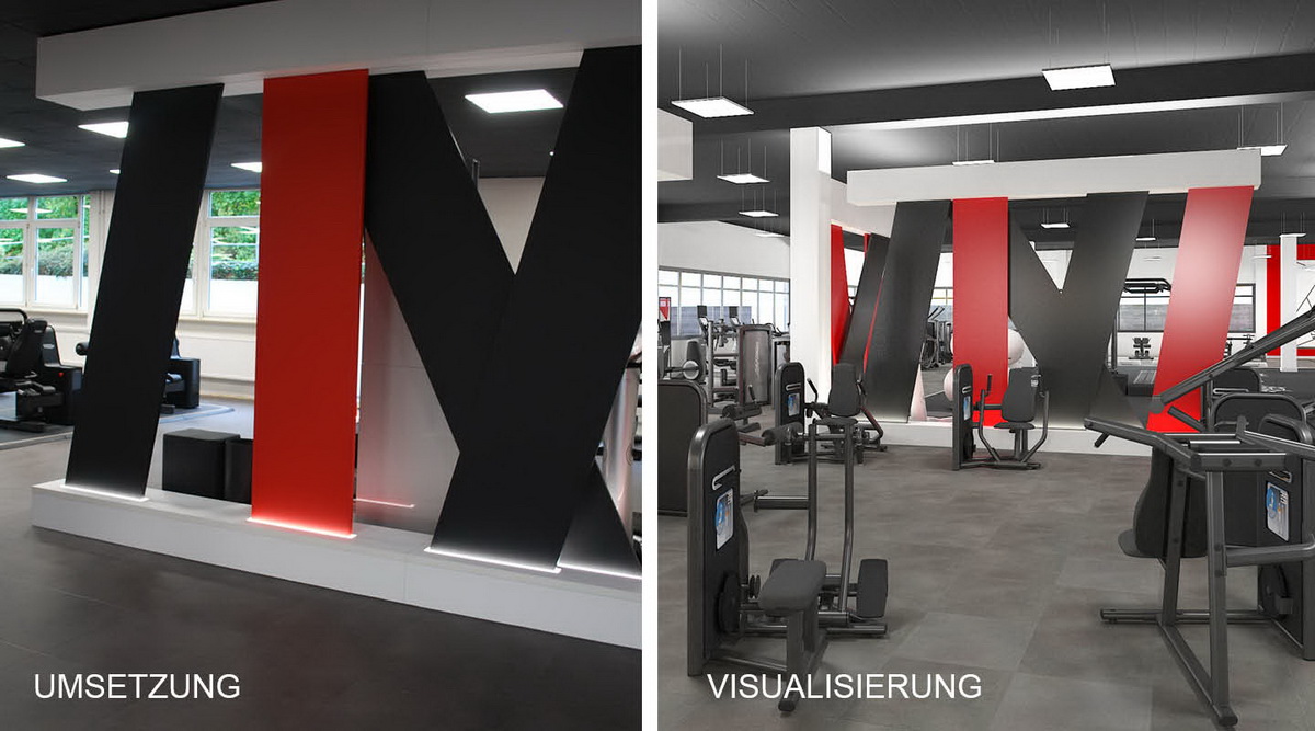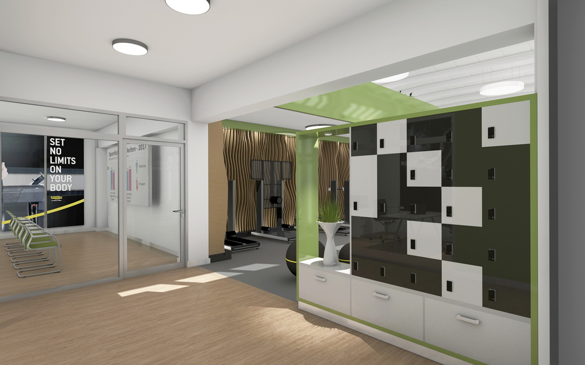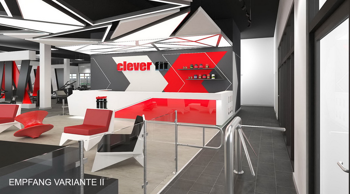 Speziell für Clever Fit entwickelte Raumteiler unterstreichen die Marke…