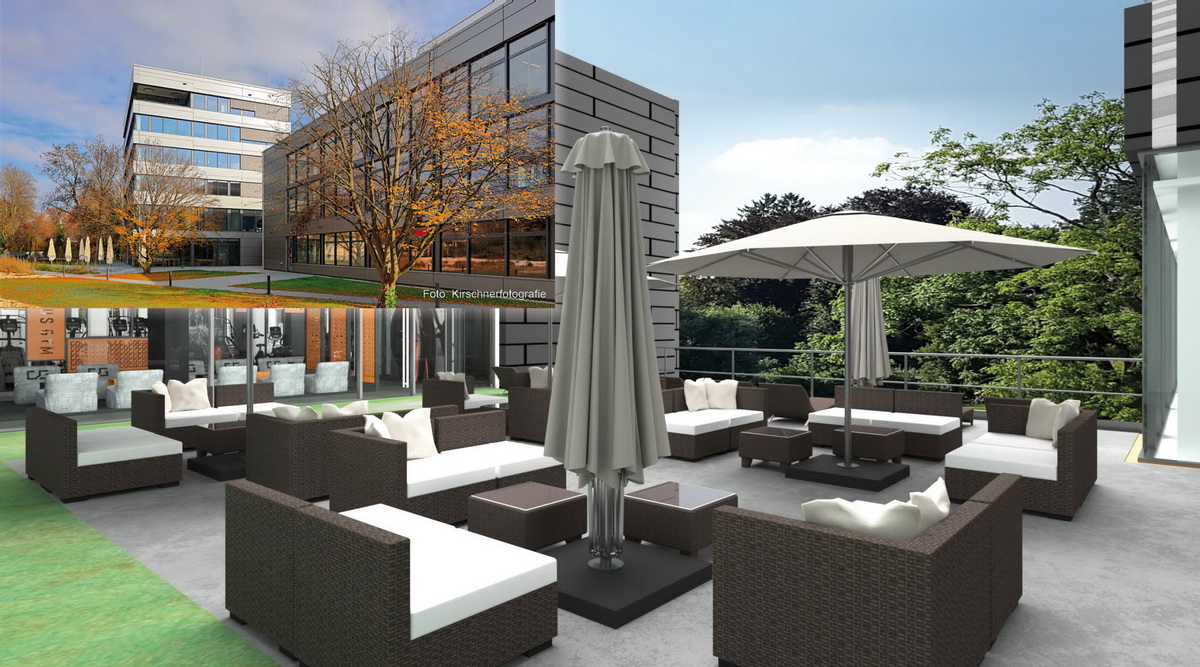 …und bietet jetzt für die Topmannschaft der deutschen Basketballliga BBU‘01 Ulm das neue Trainings- und Leistungszentrum. Vordergrund: die Conference Deck; kleines Bild: rechts das OrangeGym und links das Bürogebäude vom BBU’01.