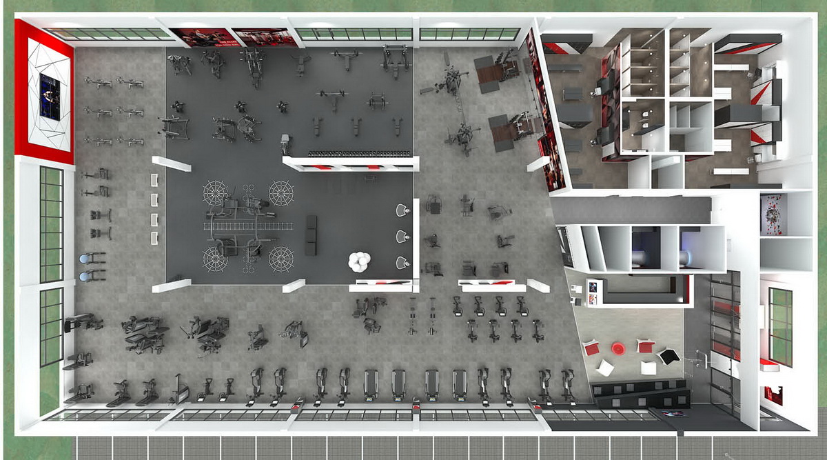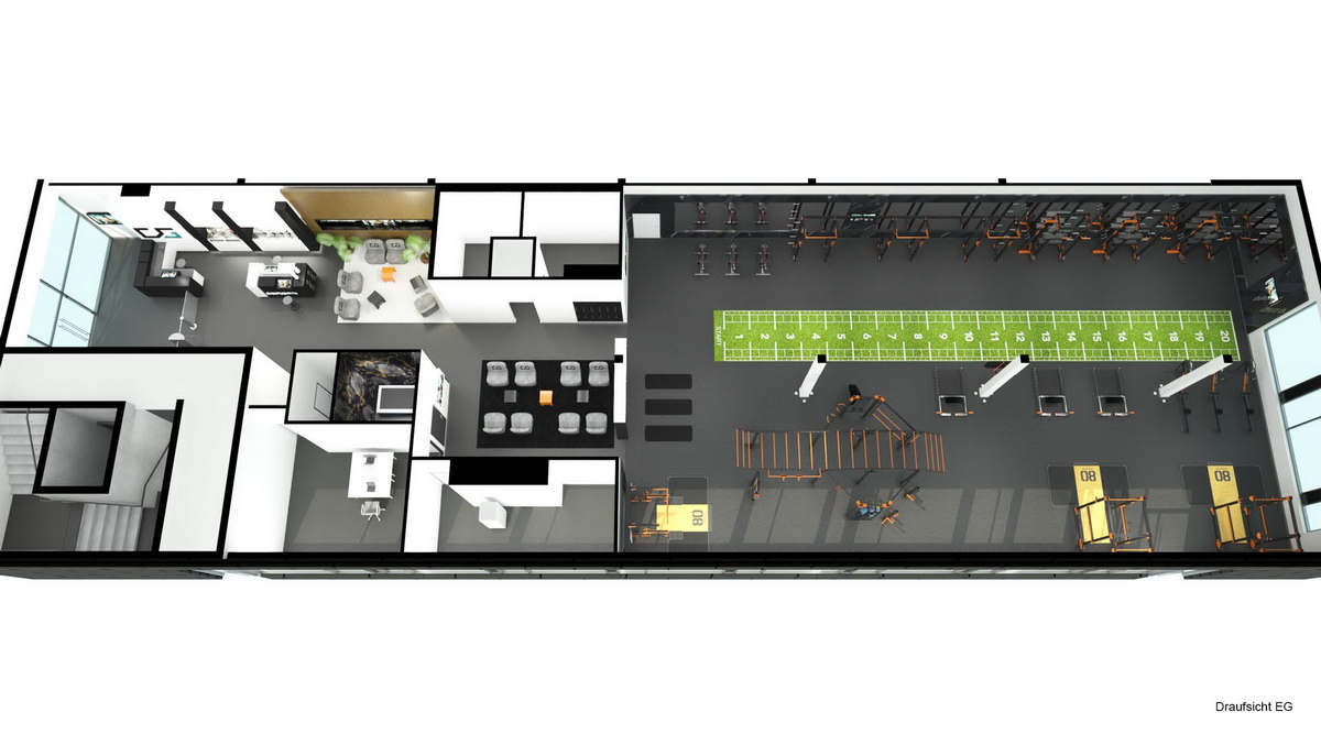In der fiktiven Anlage haben wir alle gewünschten Räume und Trainingsbereiche dargestellt, um dieses als Standardlayout zu definieren. Hier können die vielen Designelemente zum Einsatz kommen und das Zusammenspiel ausgetestet werden.