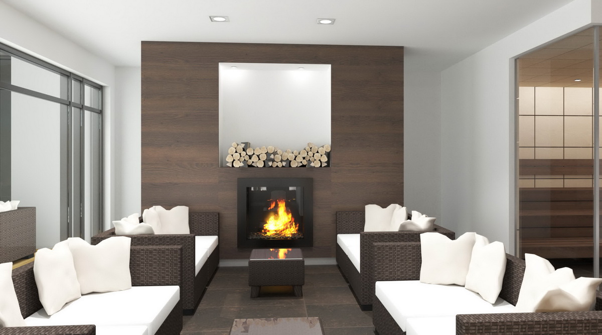 Relaxen kann man vor dem Kamin, der mit Wasserdampf funktioniert.