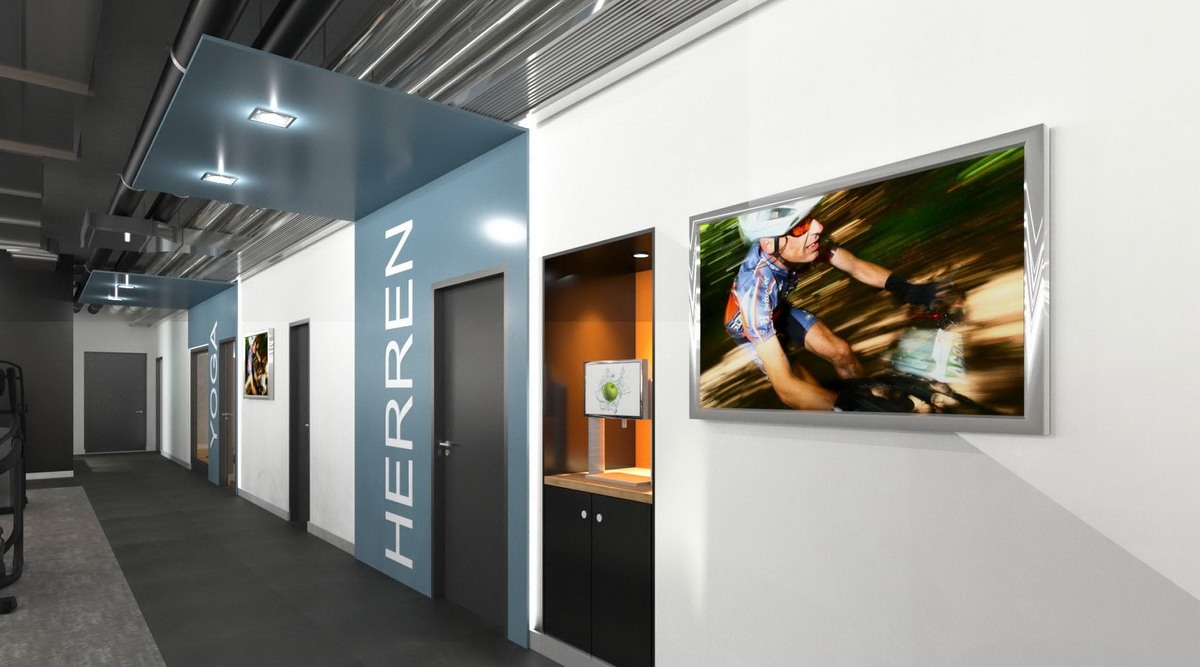 Durch großformatige Bilder und ansprechendes Licht haben auch die vergleichsweise dunklen Trainingsflächen eine angenehme Atmosphäre.