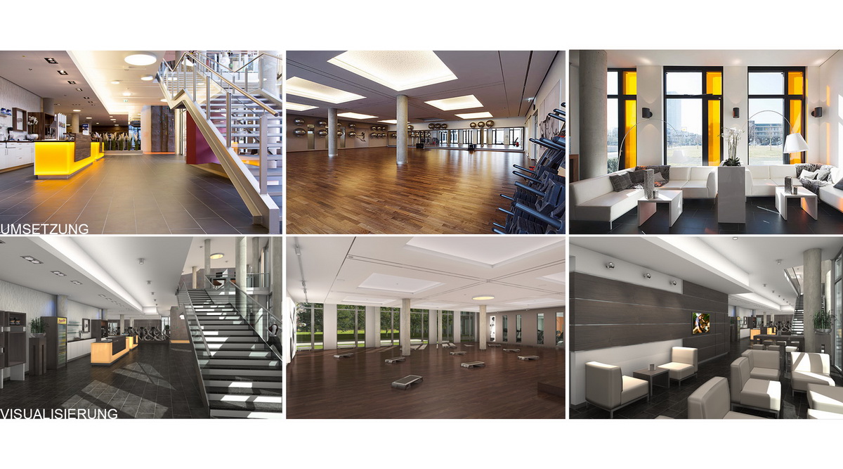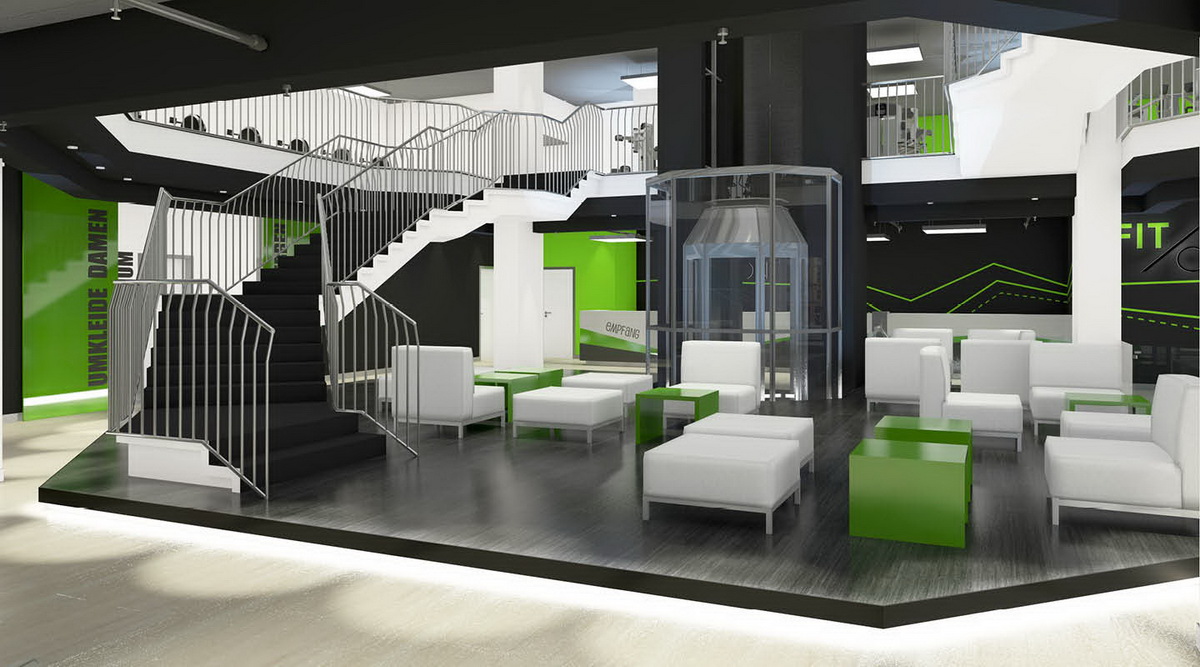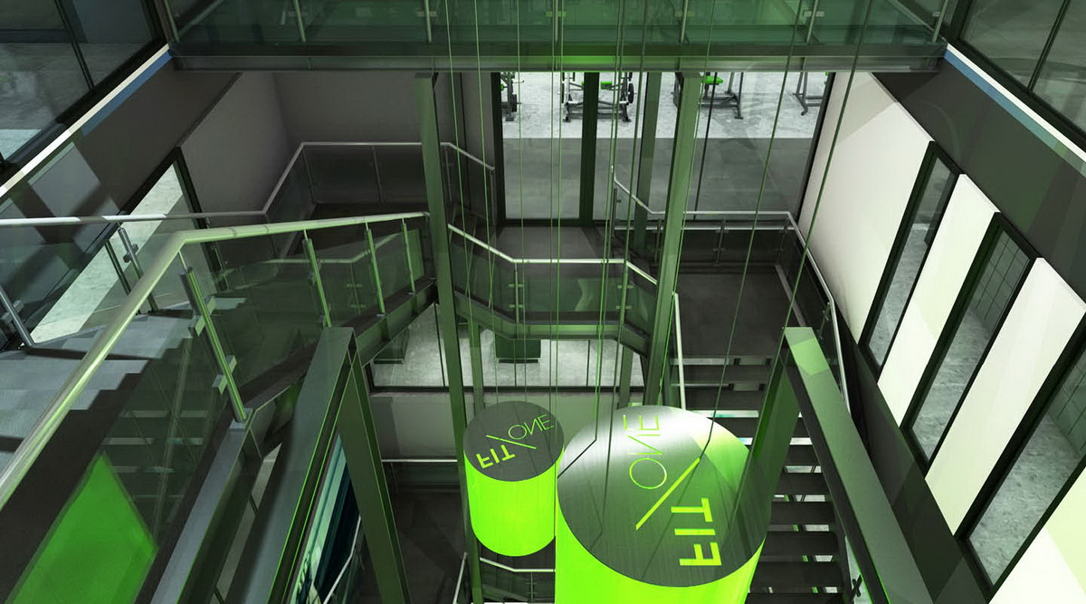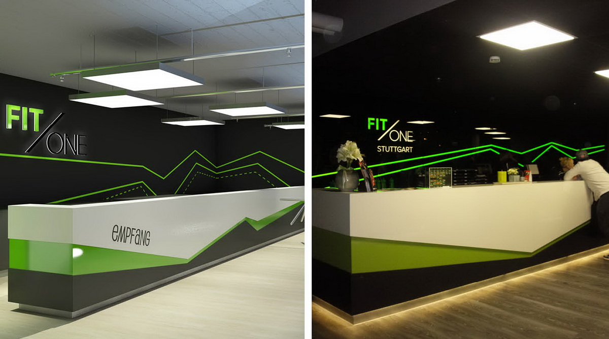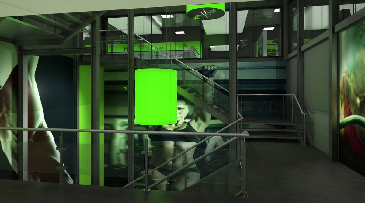 2014 wurden wir mit der Entwicklung und CI-Gestaltung der ersten FIT/ONE Anlage in Stuttgart beauftragt, ein 6stöckiges Gebäude mit großem Atrium in der Mitte.