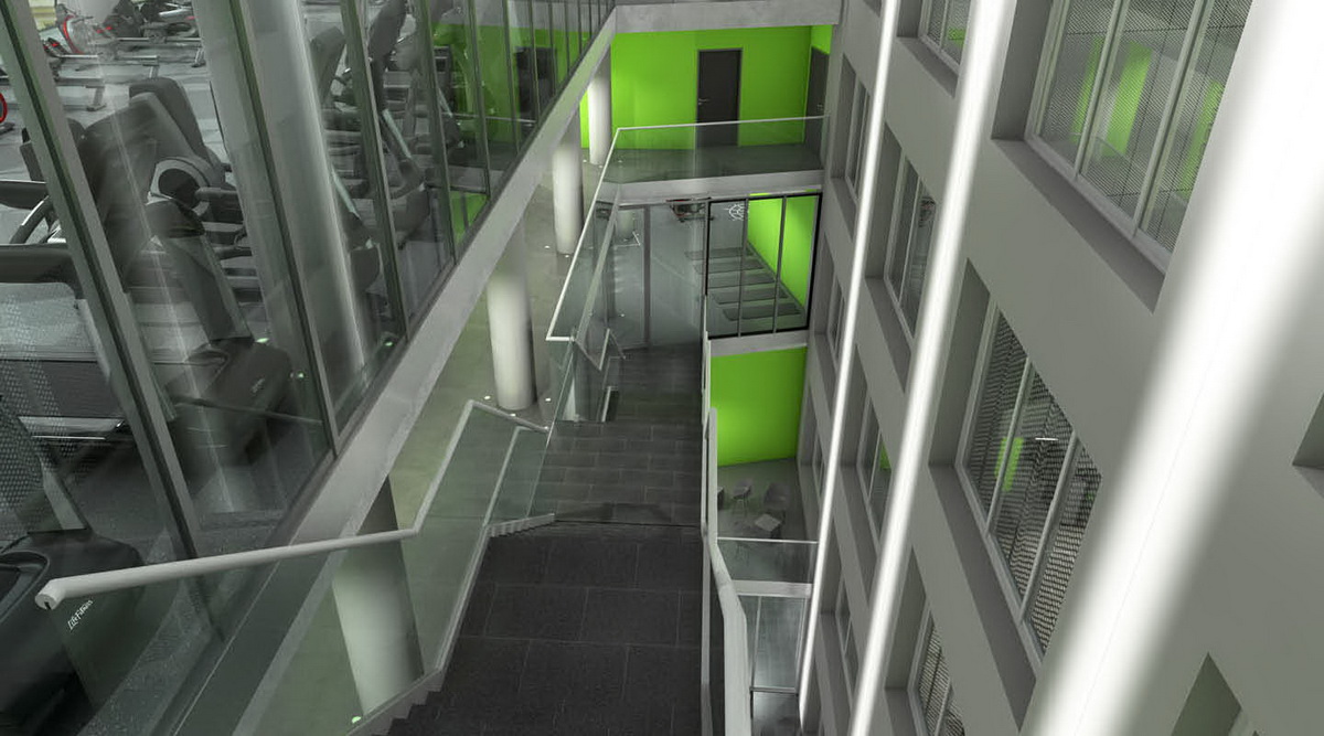 Auch in Berlin am Gleispark haben wir in dem von CollignonArchitektur konzipierten Gebäude ein Atrium, welches die fünf Etagen mit zwei Himmelstreppen verbindet, eingeplant.