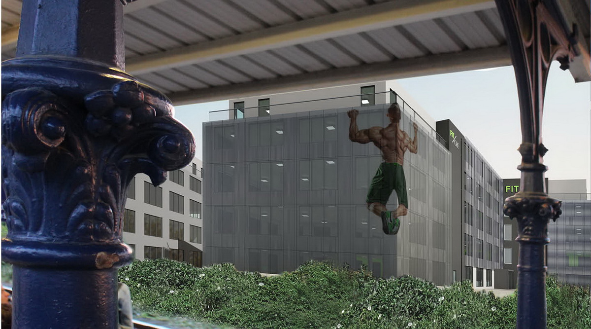 Auch um die Werbegestaltung an der Fassade haben wir uns gekümmert. Den Mann an der Klimmzugstange kennen sicherlich schon viele aus der vorbeifahrenden S-Bahn am Bahnhof Yorckstraße.