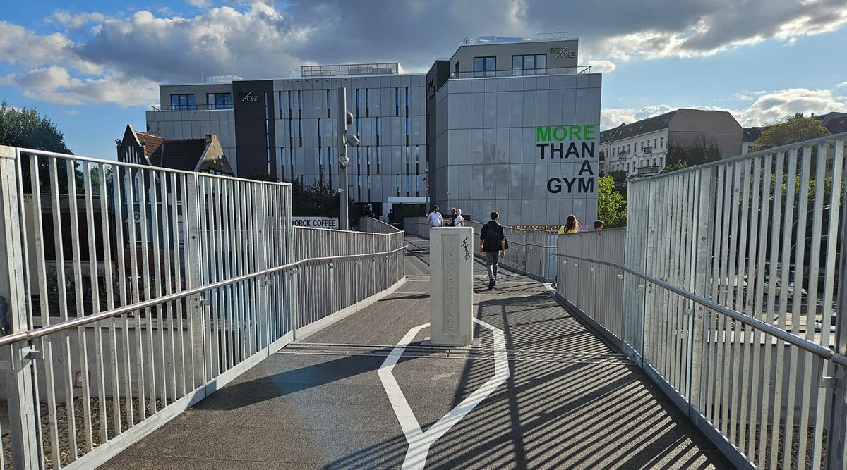 Mittlerweile ist auch die berühmte „Brücke Nr. 5“ der unter Denkmalschutz stehenden Yorckbrücken wieder aufgebaut. Die Fußgänger- und Fahrradbrücke endet direkt vor dem Eingang des Fit/One im 1. OG.