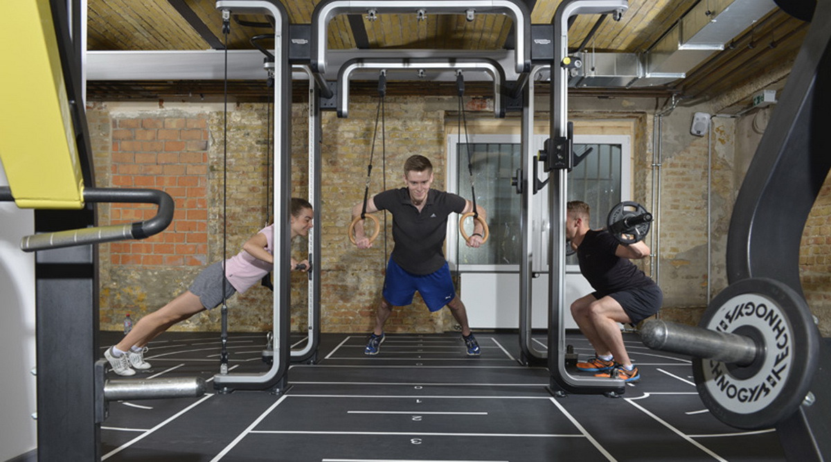 Wir generierten deutlich mehr Nutzfläche und versuchten, Gänge soweit wie möglich zu vermeiden. Die vorher abgetrennte Trainingsfläche wurde nun zu einem offenen Functional- und Freeweightbereich. Die geradlinige Aufteilung ermöglicht wesentlich bessere Einbindung der Architektur.