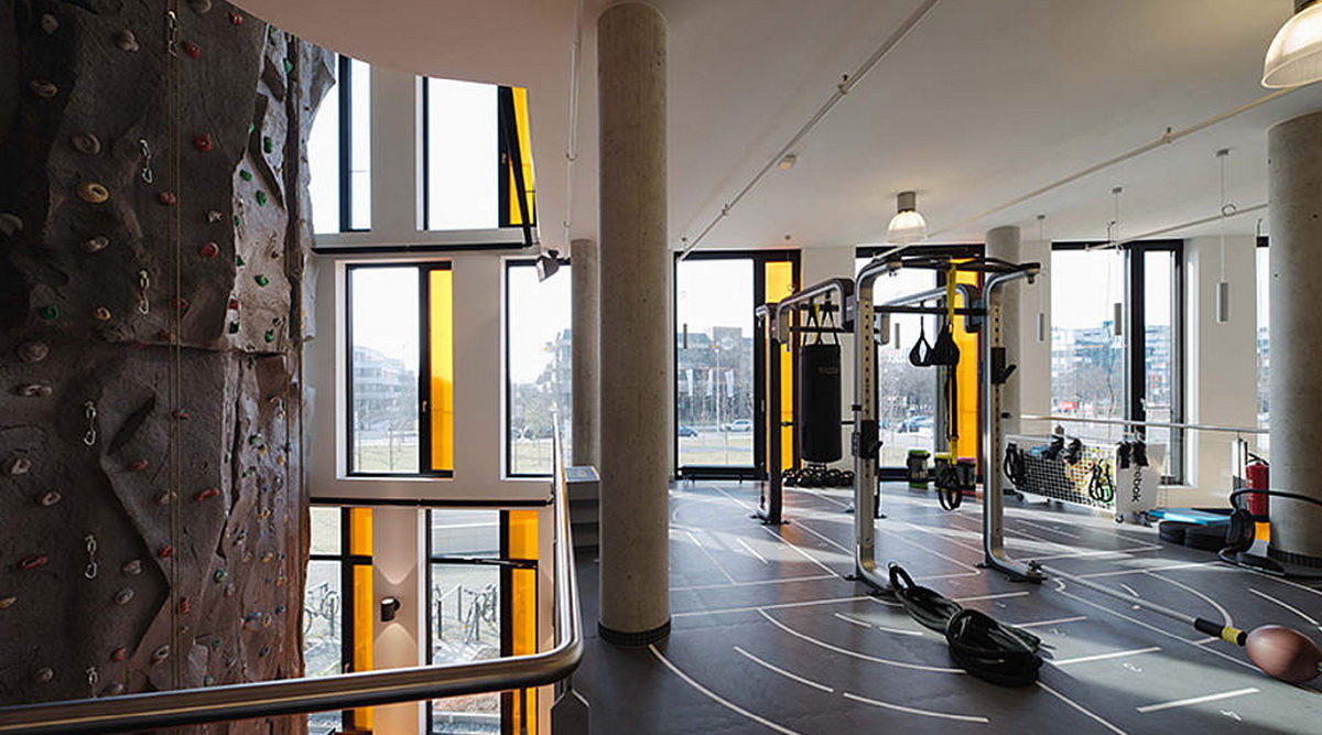 Eine rund 12m hohe Kletterwand wurde speziell für das body+soul konzipiert und gebaut. Aus der Internetlounge wurde im Laufe der Planung ein Functional Bereich.
