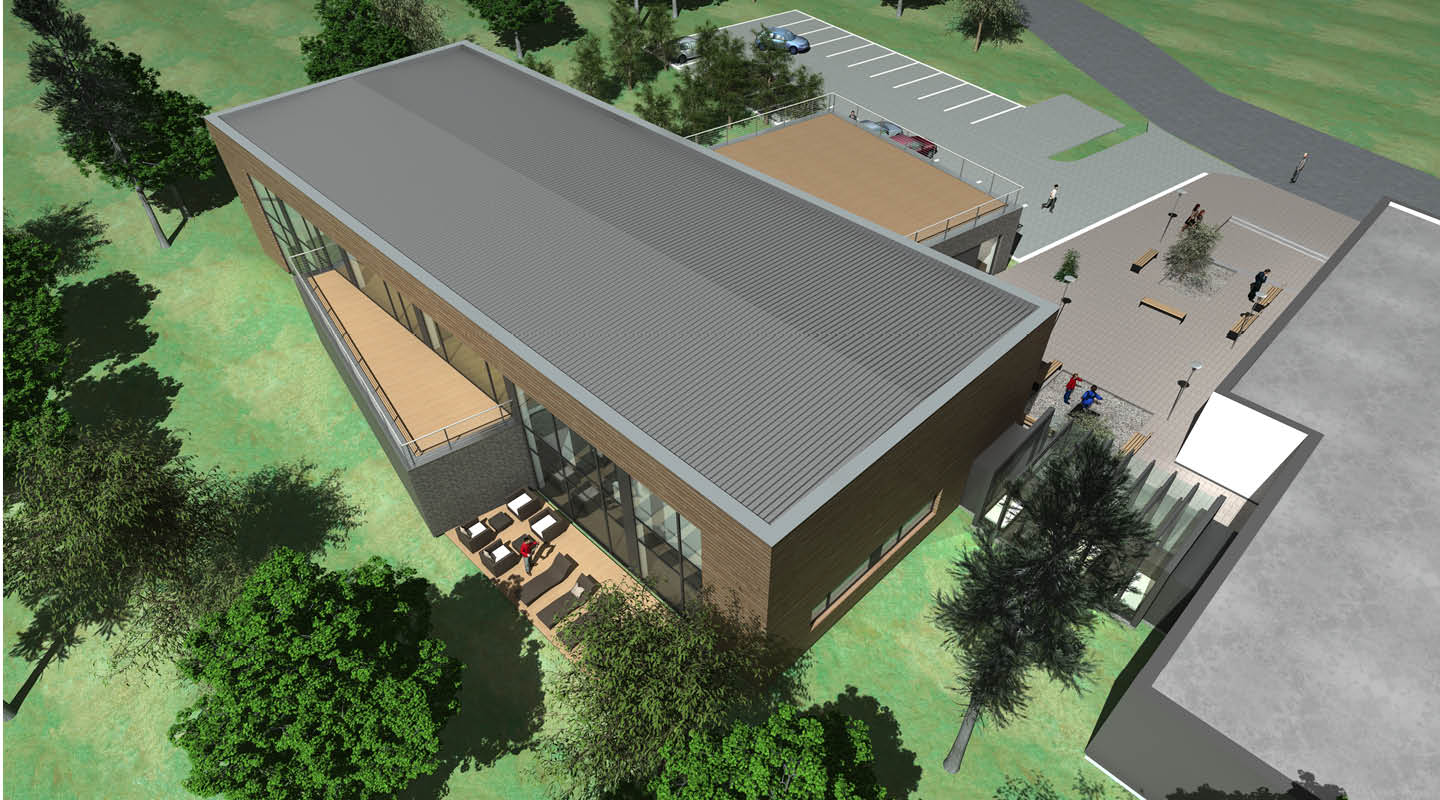 Dadurch ergeben sich spannende Durchdringungen zwischen dem eingeschossigen und dem zweigeschossigen Gebäudeteil. Außerdem können die Terrassen für diverse Fitness- und Kursaktivitäten genutzt werden.